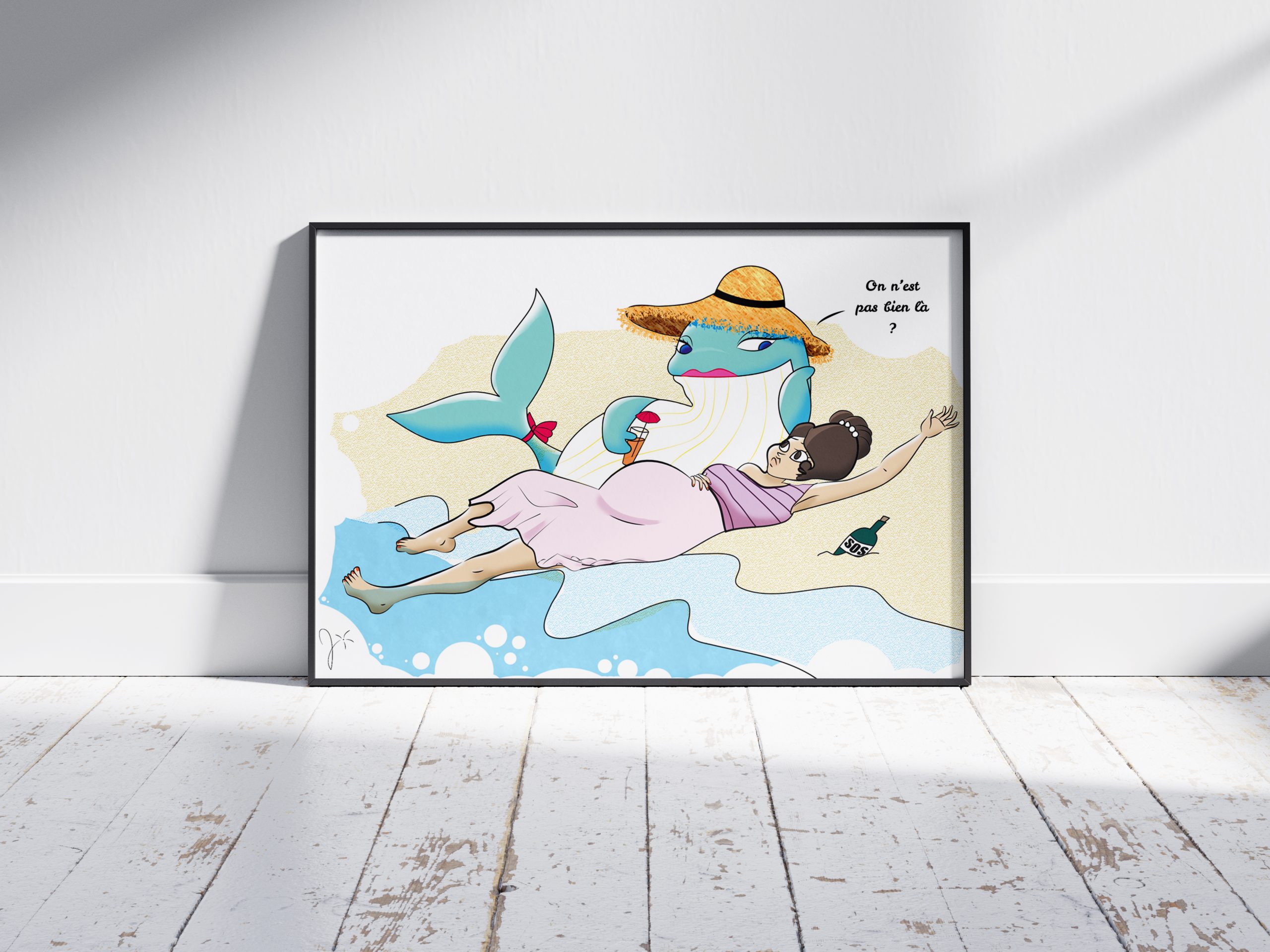 Illustration pour le blog Lifestyle d'une cliente qui souhaitait faire le parallèle entre son état enceinte et la baleine à bosse.