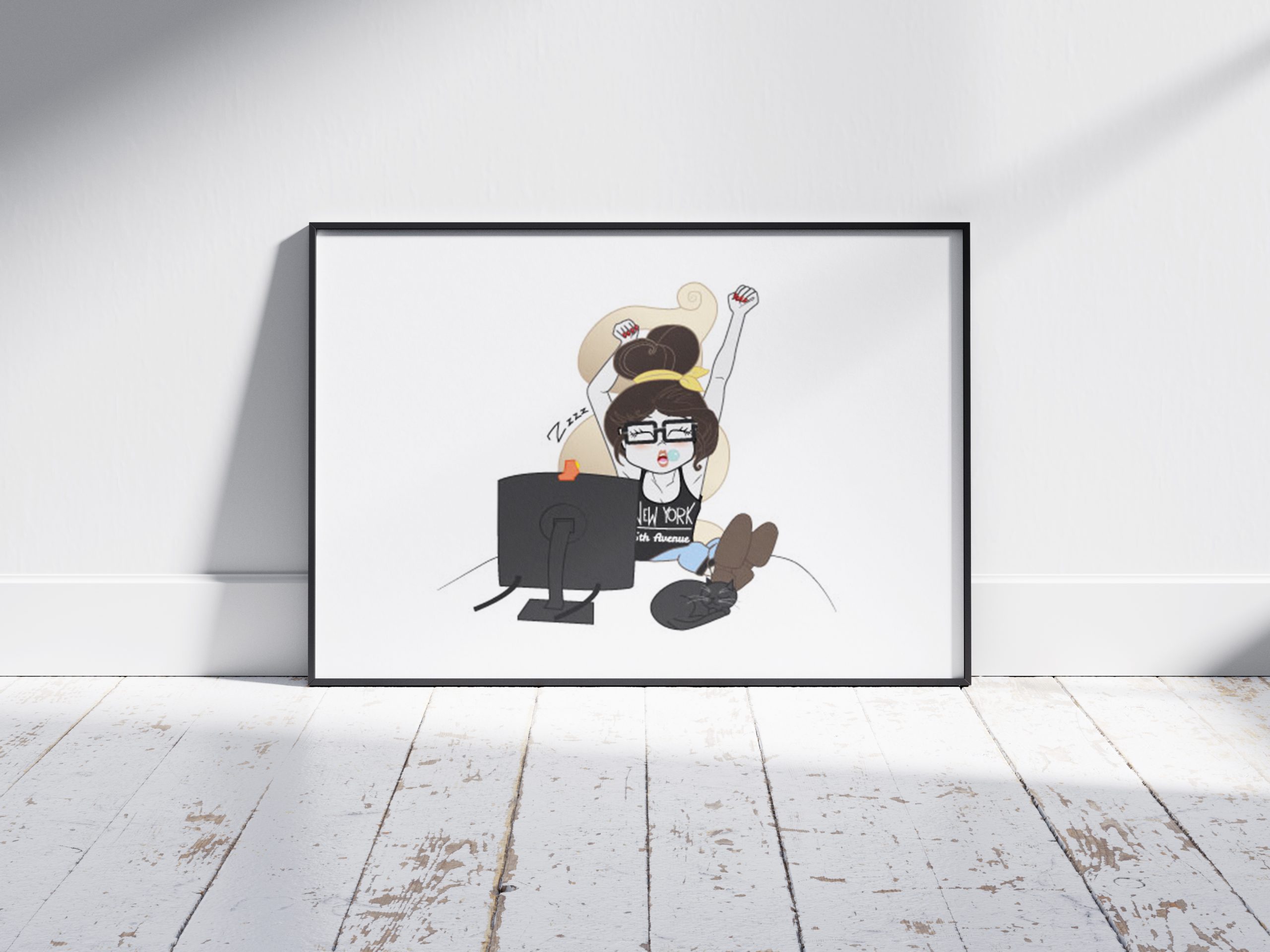 Illustration pour le blog beauté d'une cliente qui souhaitait illustrer le repos mérité après l'effort de l'écriture.